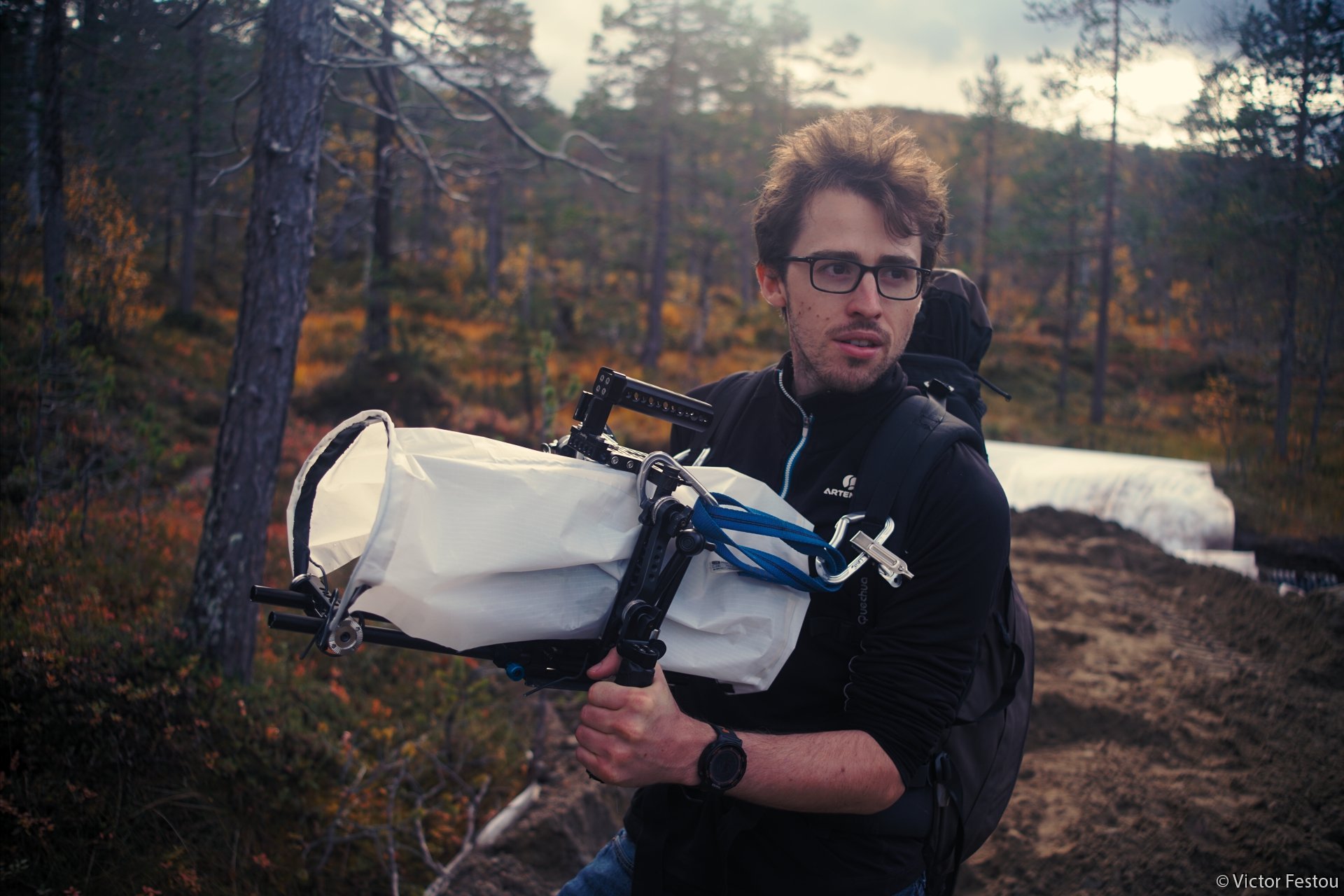 S’il est possible en photo de n’avoir besoin que de son boîtier et d’une optique, le matériel peut facilement devenir volumineux en vidéo, rien qu’avec l’ajout d’un moniteur et d’un follow-focus. Les protections photos deviennent bien trop petites et il faut donc trouver d’autres solutions.