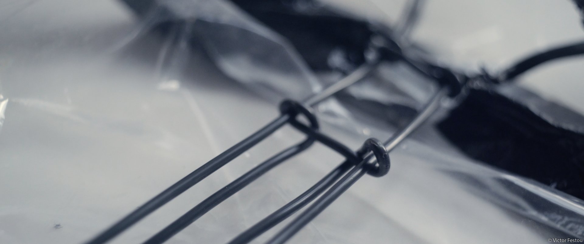 Elle a été réalisée par le même fil de fer maintenu par du gaffer mais cette fois avec un rideau de douche plastique transparent. Tout à été découpé en une seule pièce pour éviter les fuites.