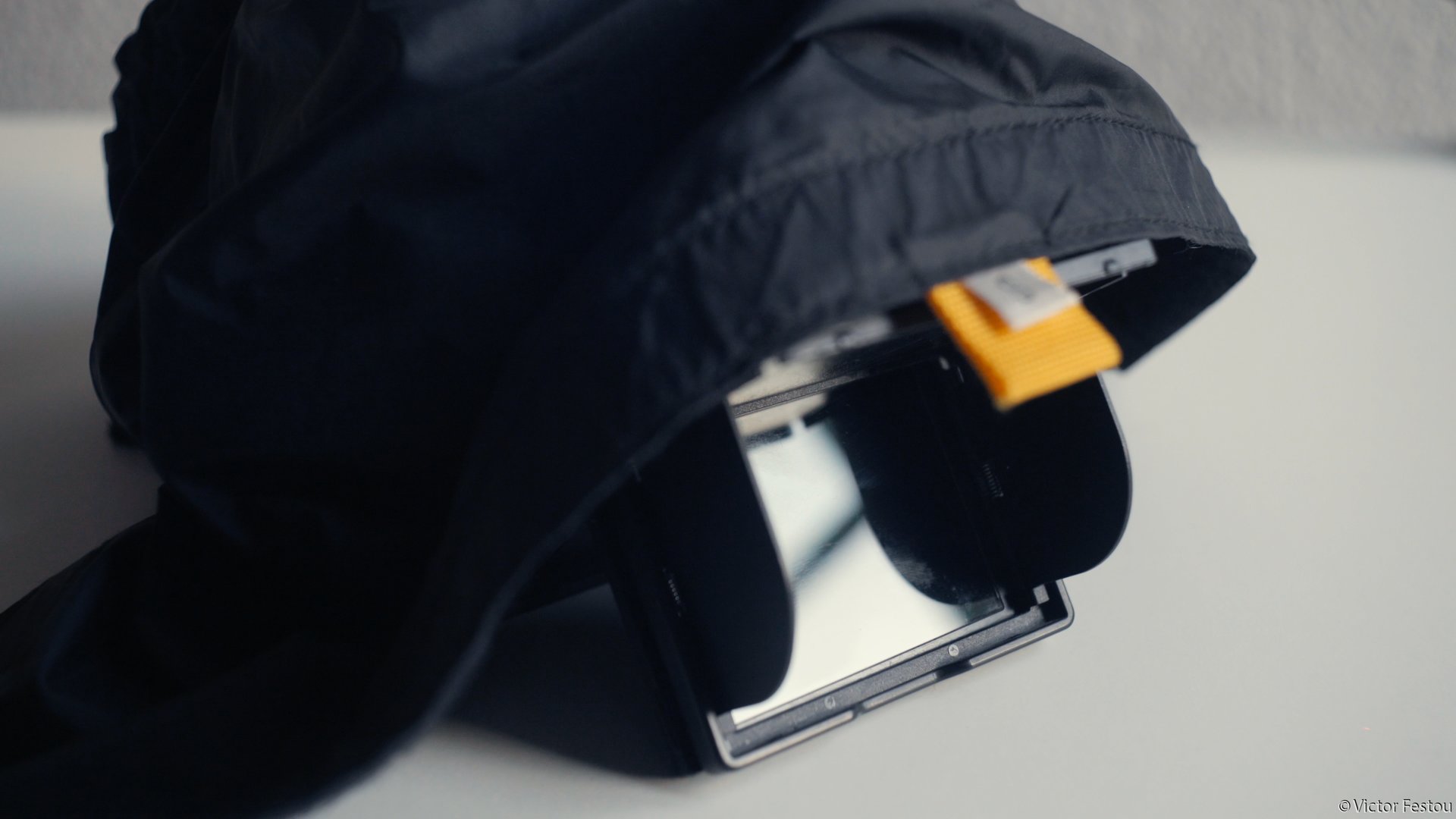 - La toile opaque empêchait de voir les réglages que l’on faisait lorsque la caméra était sur pied.