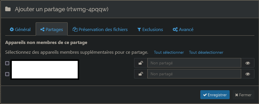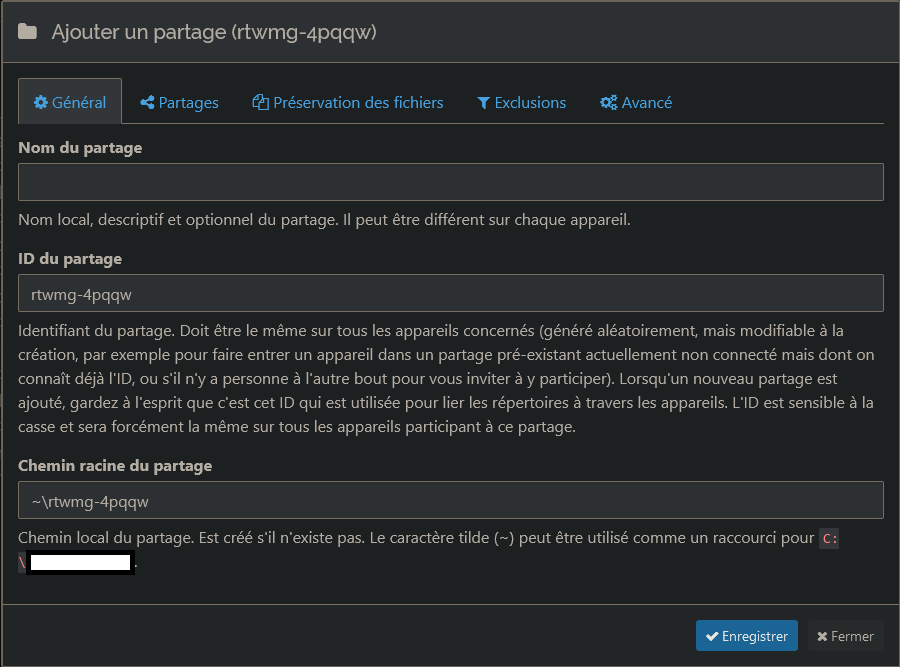 Si accepté, les mêmes onglets de configuration seront ouverts et pour la configuration du partage sur l’autre machine. Chaque poste aura donc sa propre configuration.